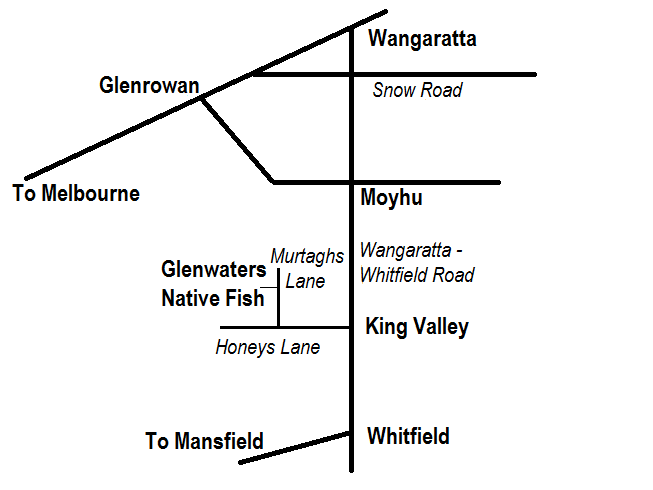 Glenwaters Native Fish is located in King Valley, between Moyhu and Whitfield, on Murtaghs Lane.